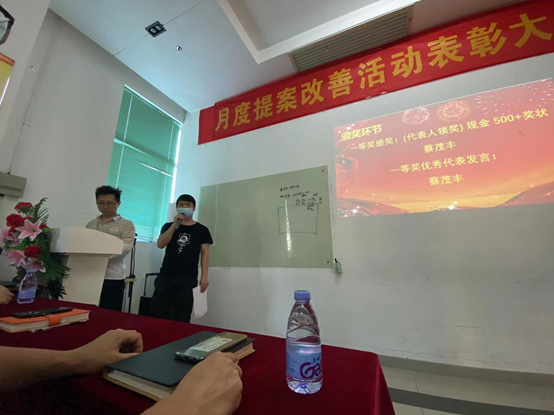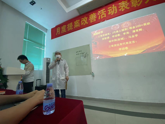 4月12日,華南工廠召開了三月提案改善表彰大會,為積極參與精益提案改善活動的員工進行頒獎。各部門領導和獲獎員工參與了本次頒獎儀式。